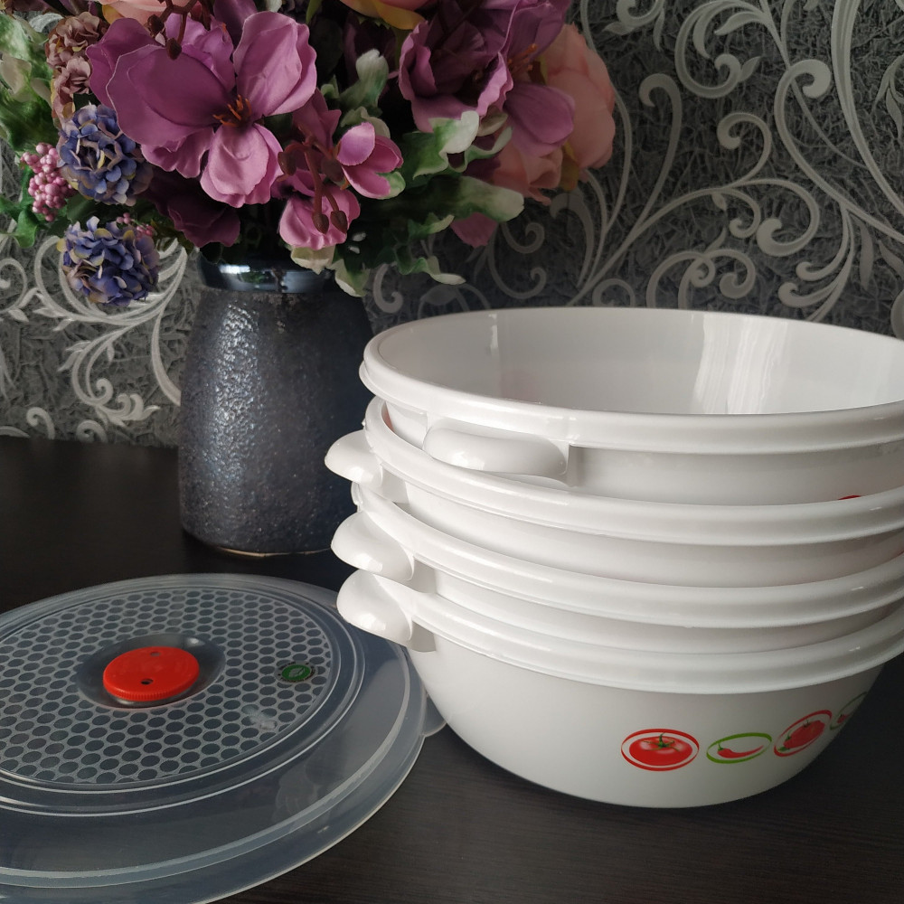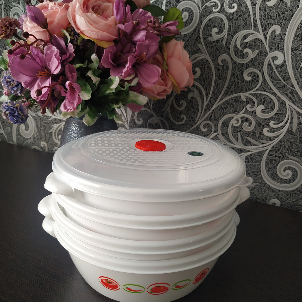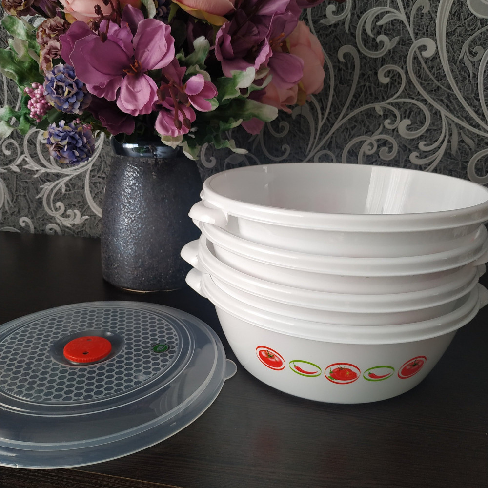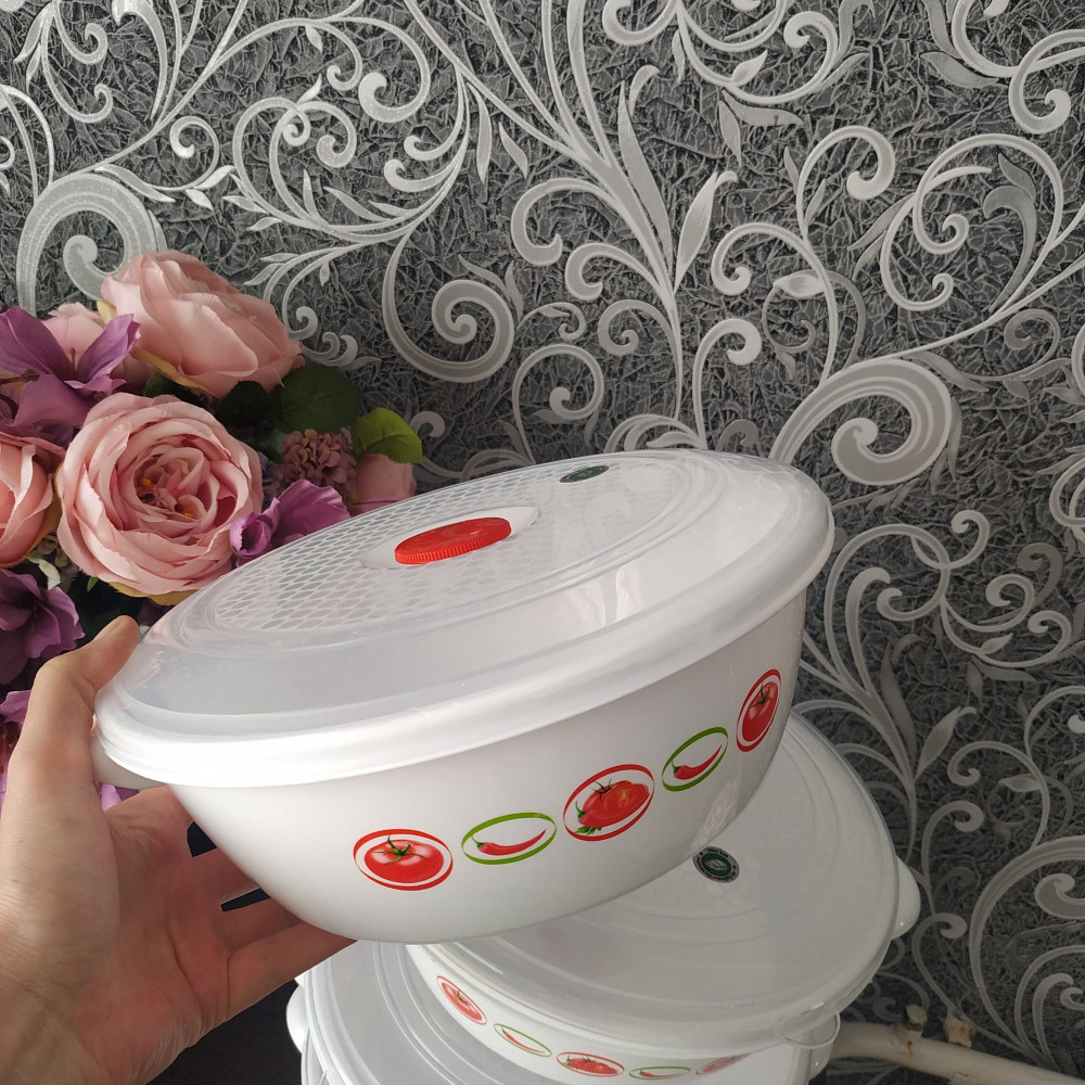 Брала для холодильника 4 штуки по 3 литра и 2 штуки по 2 литра,перекладывать с кастрюль готовую пишу. Крышка прозрачная хорошо видно,что лежит. Рисунок не наклейка,печать. Мне прислали такой,без возможности выбора. все устраивает и салат намешать и пишу подогреть и в холодильник убрать и в морозильник...универсальны. Рекомендую. Спасибо Флип