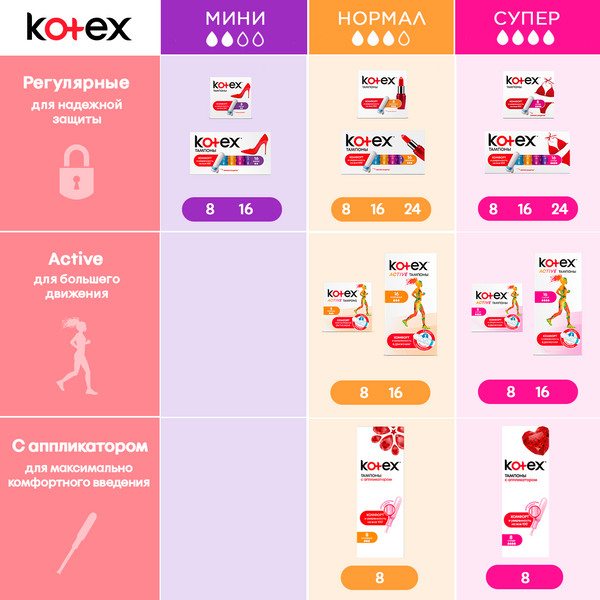 Kotex Тампоны «Active Super»-20% +69 впитываемость