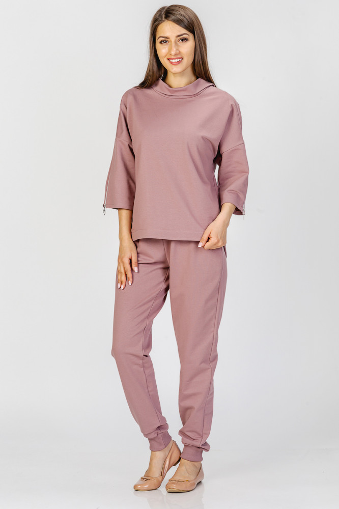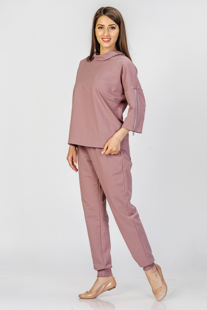 Костюм хороший, интересный фасон. Цвет более тёмный, чем на фото, я бы сказала, цвет какао с молоком. Почему то резинка на поясе и на штанинах прилично отличается от основного цвета., это минус. Размер 50, но маломерит. У меня верх-50, низ-48,сел отлично. Но на конкретный 50й, думаю, подойдёт 52. В общем, покупкой довольна. Как всегда, быстрая доставка. Спасибо.
