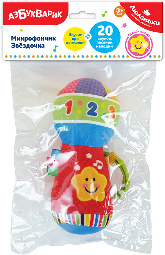 Азбукварик Микрофончик «Звёздочка»В данный момент этот товар отсутствует в продаже. Возможно, у нас найдется аналогичный или похожий товар здесь. Серия: Люленьки Мягкая музыкальная игрушка-микрофончик подарит малышу много радости! |