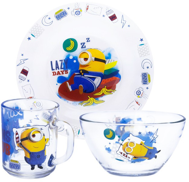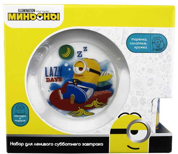 ND Play Набор посуды «Миньоны 2. Ленивые»В данный момент этот товар отсутствует в продаже. Возможно, у нас найдется аналогичный или похожий товар здесь. Серия: Миньоны Набор детской посуды «Миньоны 2. Ленивые». Посуда изготовлена из прочного прозрачного стекла, на поверхность которого нанесены изображения героев популярного мультфильма. Посуда отличается стильным и оригинальным дизайном. Набор детской посуды содержит тарелку (диаметр 19,5 см), салатник (12,5 см) и кружку (объём 230 мл). Подходит как для горячих, так и холодных блюд и напитков. Посуда детская представлена в презентабельной красочной коробке: готовый подарок для ребенка на день рождения! |