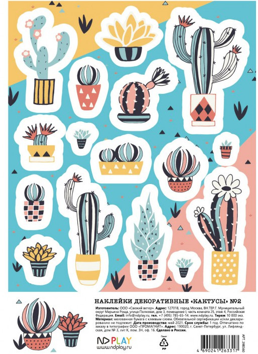 ND Play Наклейки декоративные «Кактусы»В данный момент этот товар отсутствует в продаже. Возможно, у нас найдется аналогичный или похожий товар здесь. Декоративные наклейки с забавными мультяшными персонажами. Продукция сделана из высококачественных материалов и отличается высоким качеством изображения и яркостью цветопередачи. Такой набор наклеек позволит сделать любимые вещи ребенка уникальными — можно украсить комнату, тетради и игрушки. Польза игр с наклейками: развитие мелкой моторики и укрепление мышц рук, развитие двусторонней координации рук: одной рукой необходимо держать бумажное основание, а второй снимать наклейку, развитие воображения и фантазии. Декоративные наклейки — это коллекция ярких стикеров, которая собрана специально для детей и их родителей! |