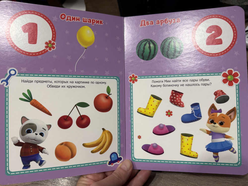 Книжка выполнена из плотного картона. По фотографии было не понятно. Купила доче 2,8. С любимыми героями думаю будет учить счёт с удовольствием. Покупкой довольна