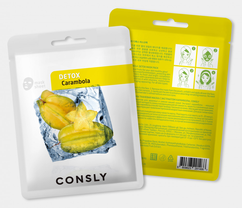 Consly Маска для лица выводящая токсины с экстрактом карамболы