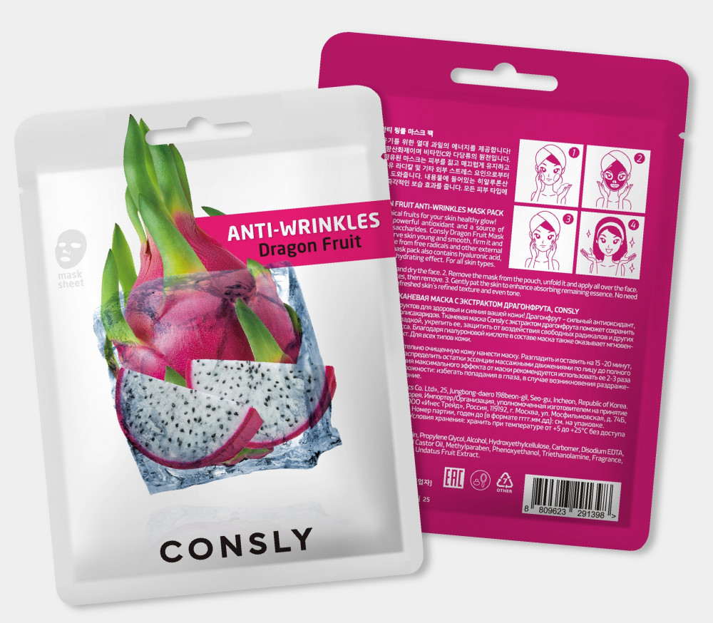Consly Маска для лица антивозрастная с экстрактом драгонфрута