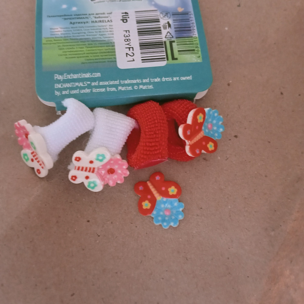 На одной резиночке не было бабочки отклеилась видимо но в посылке ее не было, такие вещички надо упаковывать в пакетик хотя бы,