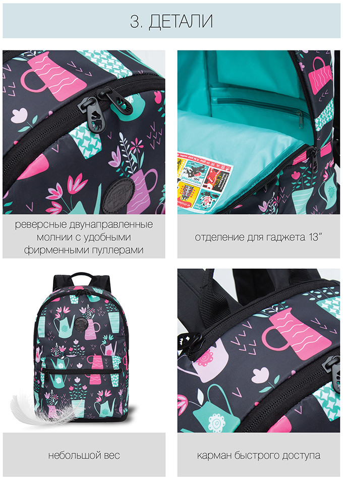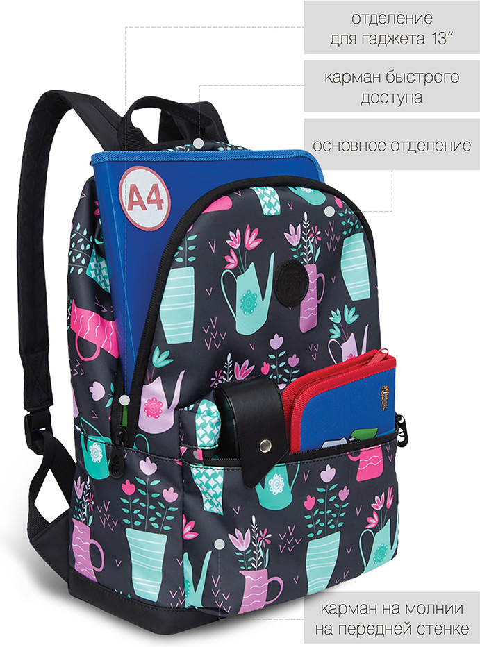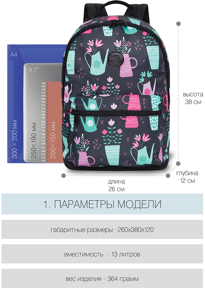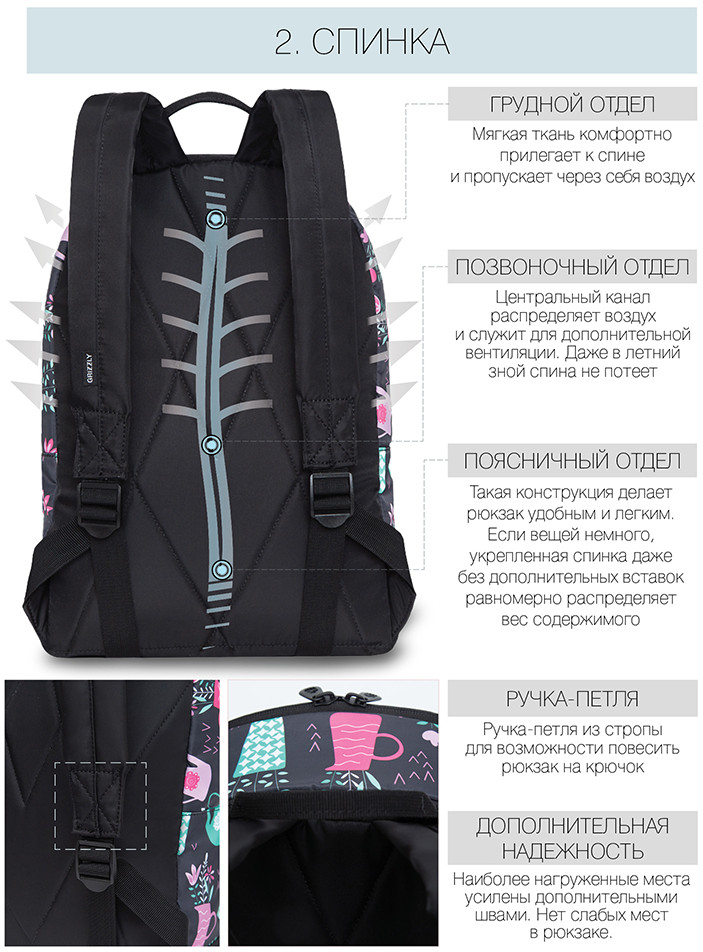 Небольшой стильный и легкий городской рюкзак Grizzly для прогулок и путешествий, отдыха и спорта, работы и магазина, школы и института. Этот эргономичный городской рюкзак продуман до мелочей. Он имеет одно вместительное основное отделение с карманом для планшета или ноутбука 13″ и карман быстрого доступа в верхней части рюкзака. У рюкзака большой накладной карман спереди, удобная укрепленная спинка, регулируемые мягкие лямки и ручка для переноски.