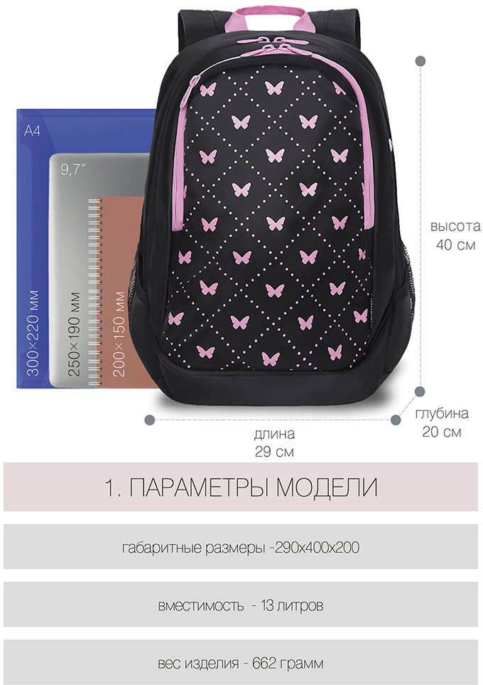 Grizzly Рюкзак молодежныйВ данный момент этот товар отсутствует в продаже. Возможно, у нас найдется аналогичный или похожий товар здесь. Молодежный рюкзак Grizzly специально разработан для учащихся средней и старшей школы. Но подойдет он для студентов, и для работы, и для прогулок. В основном отделении есть карман для планшета или ноутбука 13″. Дополнительное переднее отделение оснащено съемным держателем для ключей и четырмя карманами. В карман быстрого доступа в верхней части рюкзака можно спрятать телефон. Боковые карманы из сетки предназначены для бутылки с водой или мелочей. Анатомическая спинка и удобные лямки позволяют равномерно распределять нагрузку на спину и плечи. У рюкзака дополнительная ручка-петля и укрепленное дно. Материал рюкзака с водо- и грязеотталкивающей пропиткой. Двунаправленные реверсные молнии с брендированными пуллерами на замках позволяют легко открывать и закрывать рюкзак. Рюкзак имеет прочную фирменную подкладку Grizzly. |