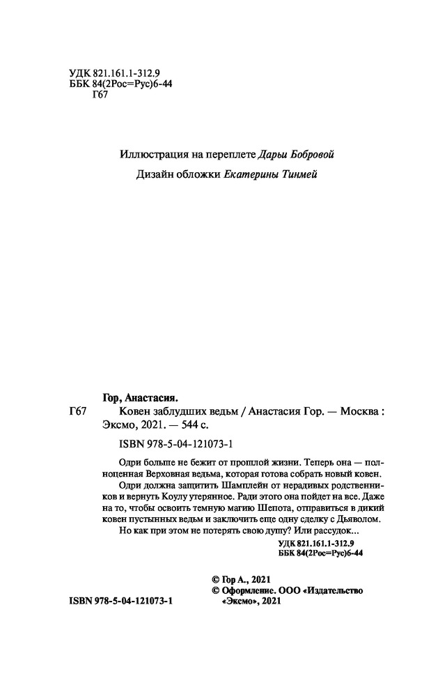 💳 Оплатить за товар можно при получении 🇰🇿 Есть бесплатная доставка по Казахстану от 1 дня 🎁 Копите бонусы с каждой покупки Серия: Young Adult. Книжный бунт. Фантастика Одри больше не бежит от прошлой жизни. Теперь она - полноценная Верховная ведьма, которая готова собрать новый ковен. Одри должна защитить Шамплейн от нерадивых родственников и вернуть Коулу утерянное. Ради этого она пойдет на все. Даже на то, чтобы освоить темную магию Шепота, отправиться в дикий ковен пустынных ведьм и заключить еще одну сделку с Дьяволом.Но как при этом не потерять свою душу? Или рассудок... |
