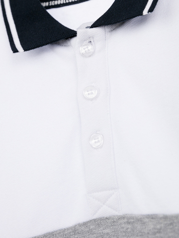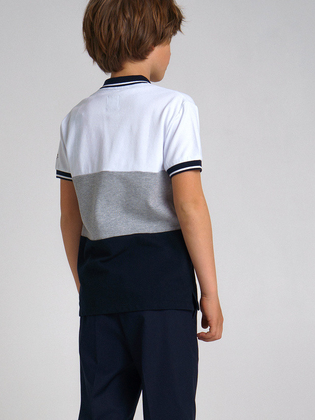 Футболка-поло из плотного фактурного трикотажного полотна-пике трех цветов. Высокое содержание хлопка 95%, благодаря наличию эластана в составе ткани, изделие проще в уходе и держит форму. Прямой силуэт. Планка с застежкой на пуговицы.