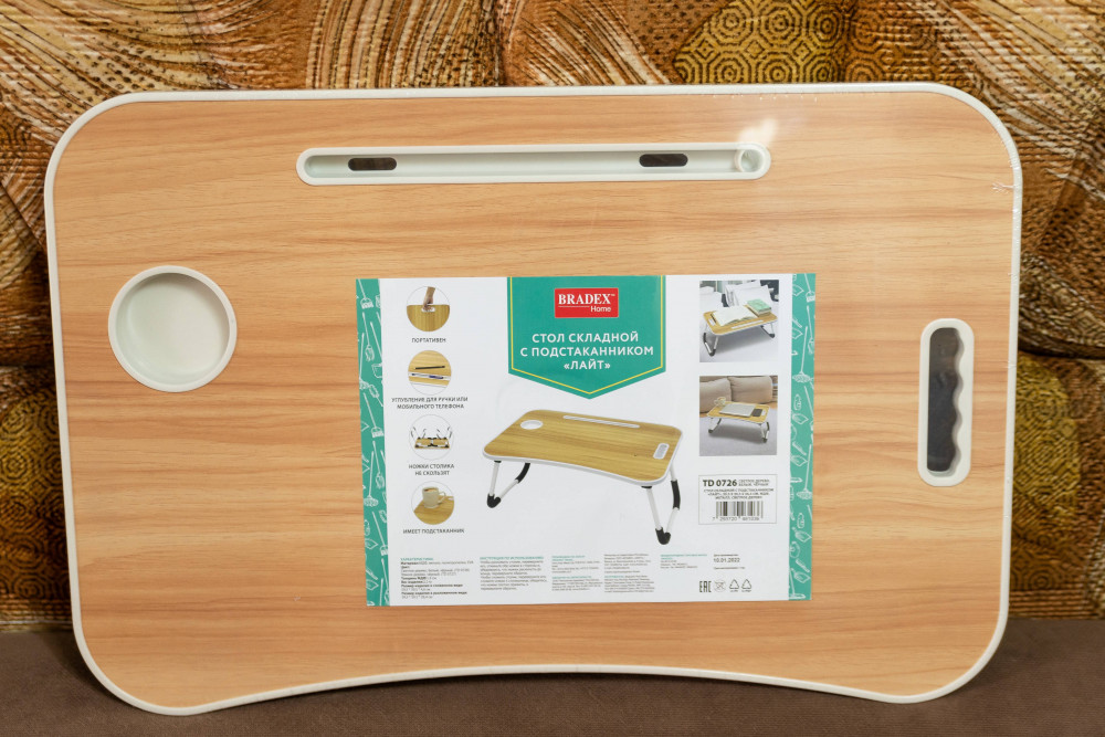 Очень хороший, удобный столик. Давно такой хотела, наконец-то дождалась скидки. Довольна на все 💯 Устойчивый, даже на кровати. На полу и любой твердой поверхности и вовсе стоит, как вкопанный. Легко складывается и раскладывается, не тяжёлый для переноса с места на место, не занимает много места, в сложенном состоянии. Купила светлого тона, прелесть, как хорошо смотрится.Лично я никаких недостатков не заметила. Подстаканник для чайной кружки маловат, но для стакана и кофейной кружки подходит. В прорези хорошо держится телефон. Подходит для чего угодно, для завтрака в постель, для занятий рукоделием, рисованием, просмотров видео, во время болезни да и так, когда ленишься вылезать из кровати 😉