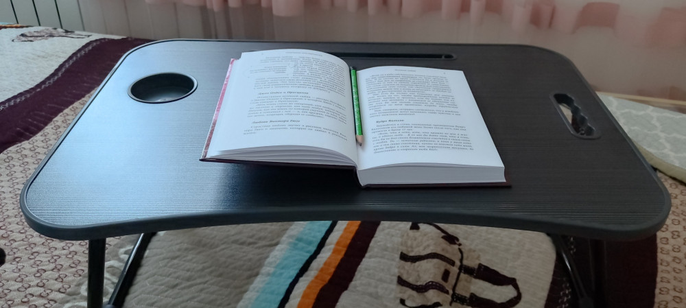Очень удобный столик, для работы с ноутбуком. На кровати, на диване очень удобно работать.