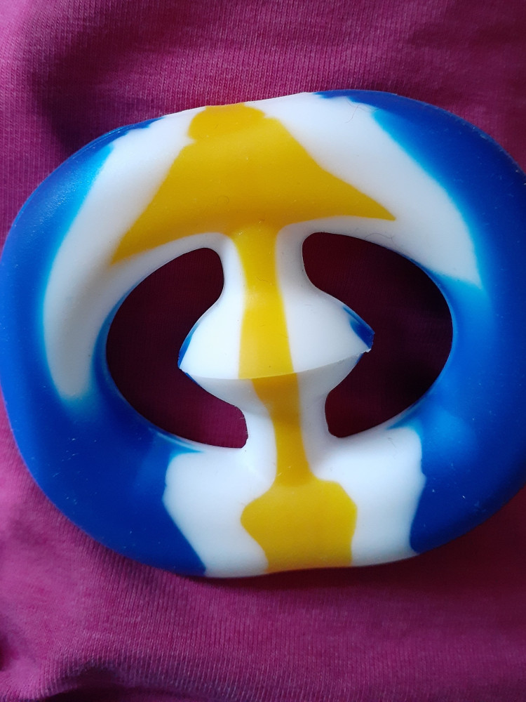 Очень классная игрушка, резина мягкая, за счёт этого легко слепляется и так держится.