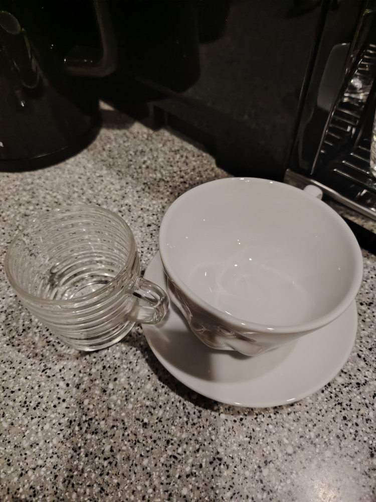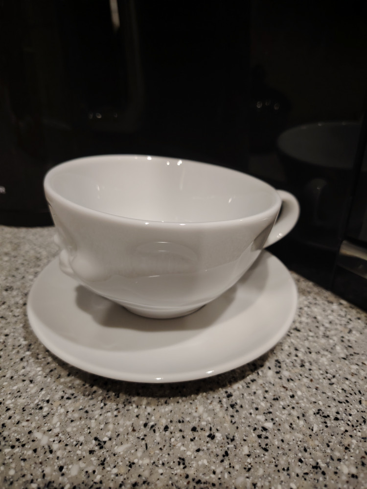 Фарфор белоснежный, кружка просто само очарование, но объём у неё оказался 300 мл.(на фирменной коробке указан 200 мл.). Я хотела для кофе (максимум пью 150 мл.), всё равно буду пользоваться. На фото рядом поставила кружечку ровно 200 мл.