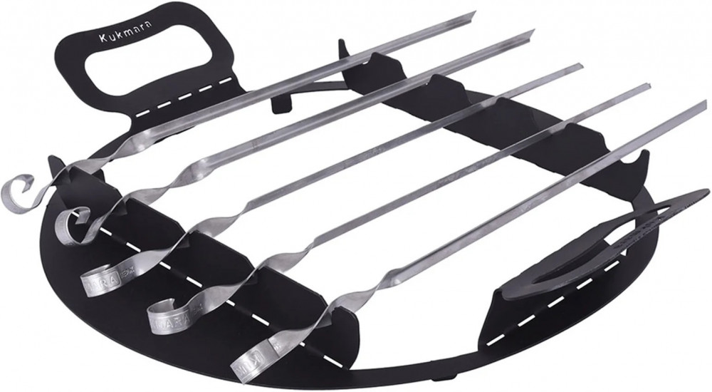 Подставка для шампуров на учаг для казана 9 л, благодаря простой и быстрой установке может использоваться в качестве мангала. Приспособление состоит из подставки для шампуров и дополнительного дна, которое устанавливается на верхний край корпуса учага.