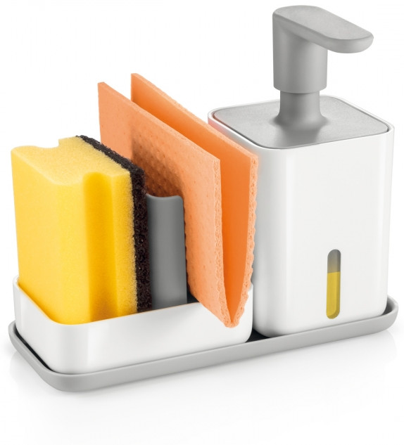 Tescoma Дозатор с подставкой для губки «Puro»В данный момент этот товар отсутствует в продаже. Возможно, у нас найдется аналогичный или похожий товар здесь. Серия: Puro Подставка для губки — это оригинальный вариант для хранения ваших кухонных губок. Если вы устали от мокрых губок, которые постоянно падают в умывальник и оставляют разводы на чистой посуде, то присмотритесь к этой подставке. Набор для мытья посуды с поддоном для упорядоченного хранения у кухонной мойки. Легкое наполнение и дозирование моющего средства, съемная перегородка подставки ускоряет сушку и облегчает очистку. Изготовлено из прочного пластика с противоскользящим дном. |