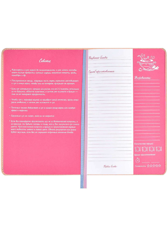 Феникс + Книга для записи кулинарных рецептовВ данный момент этот товар отсутствует в продаже. Возможно, у нас найдется аналогичный или похожий товар здесь. Книга для записи рецептов позволит создать свой идеальный сборник кулинара, который станет незаменимым помощником на кухне. Книга отличается стильным дизайном обложки и красиво оформленными страницами. Удобный формат и твердый переплет помогут бережно хранить секреты любимых блюд и все тонкости их приготовления. Вам больше не придется перебирать всевозможные издания в поисках понравившихся блюд, так как в эту книгу войдут кулинарные рецепты, любимые вами и вашими близкими. Именно вы сможете создать кулинарную книгу, которая будет у вас под рукой и станет верным помощником на кухне. В книге 6 тематических разделов по видам блюд в пастельных оттенках с советами. |