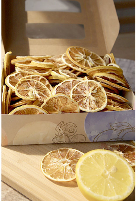 В коробке львиная доля чипсов - это лимон. Просто так погрызть - горчат, зато кинуть в чай пару ломтиков - отлично! Но за такую цену полезнее просто свежий лимон в чай класть. Тем более что чипсы с косточками... не очень. Апельсиновые чипсы очень вкусные, грейпфрутовые - на втором месте.