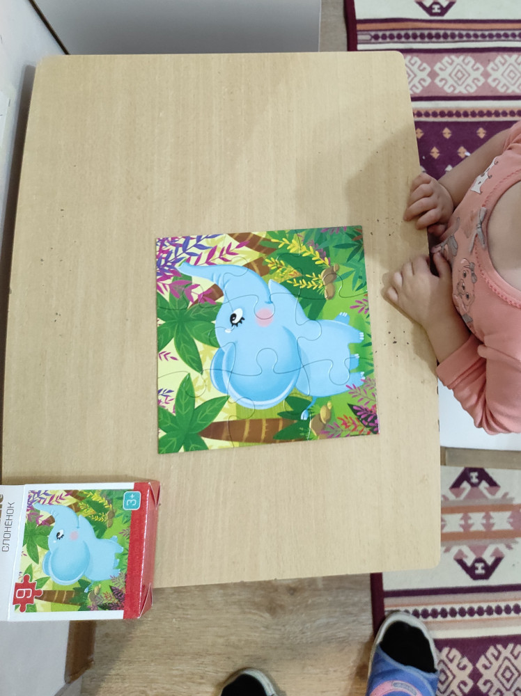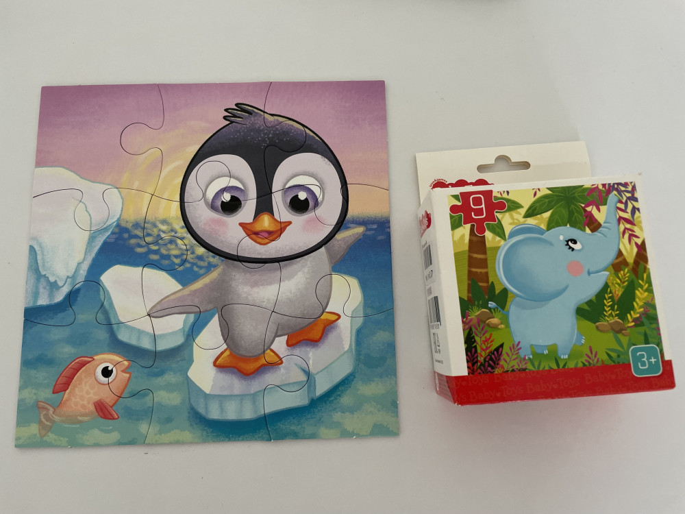 У нас почему то другой рисунок вышел. Не слоник, а пингвин. Но всё равно нам понравилось. Пазл качественный, плотный. Очень крупные детали удобно ребенку.