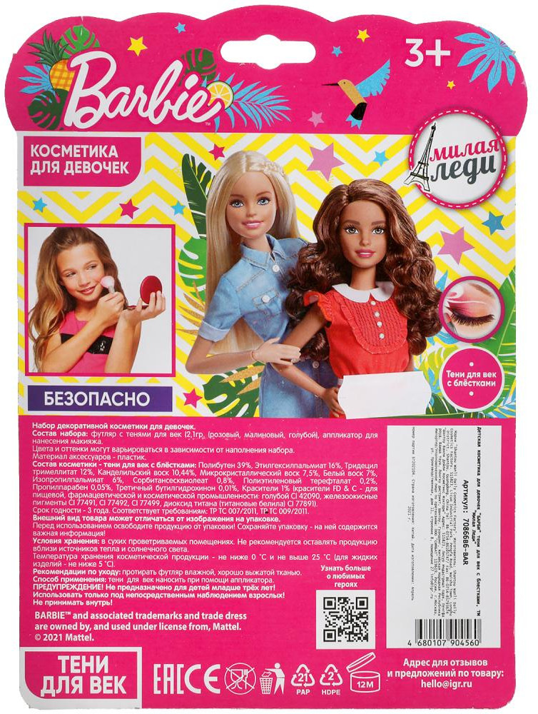 💳 Оплатить за товар можно при получении 🇰🇿 Есть бесплатная доставка по Казахстану от 1 дня 🎁 Копите бонусы с каждой покупки Набор косметики для девочек «Barbie» ТМ «Милая леди» непременно понравится маленькой моднице: |