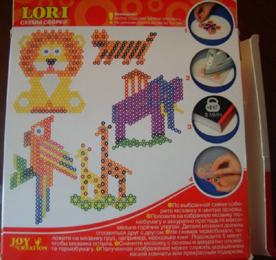 Очень расстроились, что в комплектации не было магнита. Мы уже пользовались термомозаикой фирмы лори, и я думала, что эта будет точно такой же, но оказалось, что разная комплектация. Потом посмотрела на сайте, и, в самом деле, некоторые с магнитом идут (они и подороже), а некоторые нет. Поэтому кому это важно, обращайте внимание! В этом наборе еще более существенный был недостаток: нехватка бусинок. Дочка собрала тигренка, затем попугая, а когда начала собирать слона, ей не хватило фиолетовых бусинок. Как так укомплектовывали набор, учитывая, что фиолетовые только для слона и нужны, а их нет. Опять же тот набор, который мы давно покупали, нас очень обрадовал, там все хватало, даже больше (некоторые фигурки по второму кругу делали).