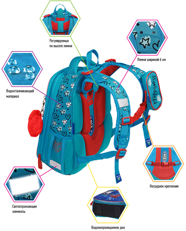 💳 Оплатить за товар можно при получении 🇰🇿 Есть бесплатная доставка по Казахстану от 1 дня 🎁 Копите бонусы с каждой покупки Серия: Expert Max Эргономичный ранец серии «Expert Max» для детей младшего и среднего школьного возраста выполнен из экологичного ЭВА материала с покрытием из высокопрочной нейлоновой ткани кордура. За счет особой структуры нити в ней достигнута четырёхкратная стойкость к истиранию по сравнению с простым нейлоном. Кордура обладает водоотталкивающими свойствами и легко чистится. Благодаря анатомической вентилируемой спинке, регулируемым по длине и высоте лямкам, а также нагрудному креплению ранец плотно фиксируется на спине ребенка, что помогает равномерно распределить нагрузку и сохранить правильную осанку. Ранец имеет 2 отделения, 2 боковых кармана на резинке, съемный кошелек на лямке для быстрого доступа к необходимым вещам. Внутри предусмотрены разделители для учебных пособий, органайзер для письменных принадлежностей, карман для мобильного телефона, карабин для ключей и именная карточка для подписи. Уплотненная мягкая ручка и петля для подвешивания к парте делают ранец очень удобным. Дно выполнено из водонепроницаемого материала с пластиковыми ножками для защиты от влаги. Световозвращающие элементы на лямках, передней и боковых частях ранца обеспечивают безопасность ребенка в темное время суток. Особенностью данной модели является наличие дождевика, расположенного в специальном кармашке в верхней части ранца. Дождевик оснащен светоотражающими элементами. |