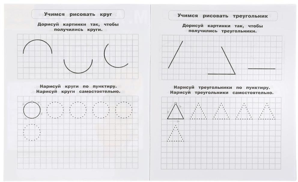 • учимся писать цифры, обводить фигуры по контуру;