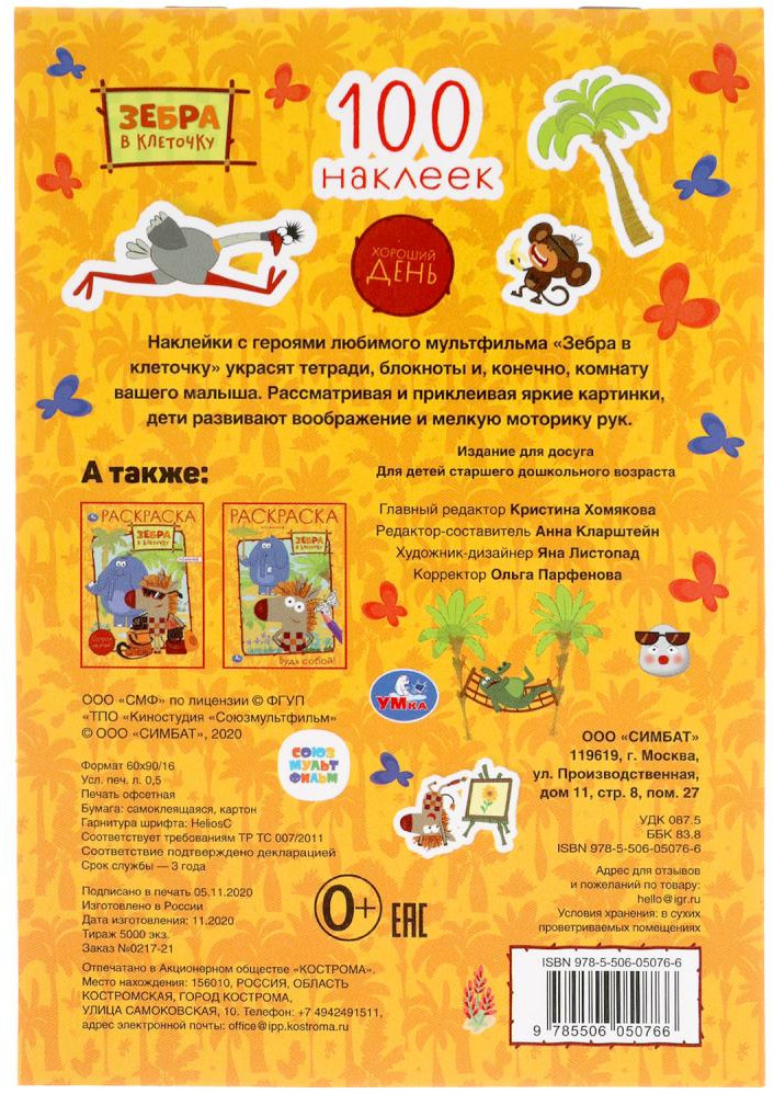 УМка Хороший день. Зебра в клеточку. 100 наклеекВ данный момент этот товар отсутствует в продаже. Возможно, у нас найдется аналогичный или похожий товар здесь. Серия: 100 наклеек Малыш с удовольствием будет приклеивать яркие наклейки на альбомы, тетради, открытки, украшать ими свою комнату или придумывать интересные истории на бумаге. Благодаря компактному формату альбом удобно брать с собой в дорогу. |
