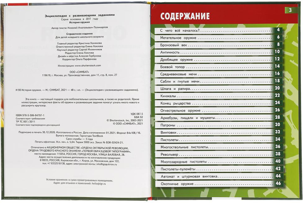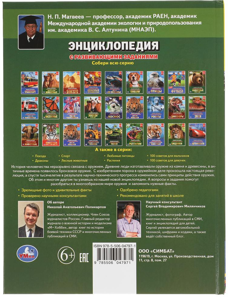 УМка Энциклопедия с развивающими заданиями «История оружия»Николай Анатольевич Поликарпов В данный момент этот товар отсутствует в продаже. Возможно, у нас найдется аналогичный или похожий товар здесь. Энциклопедия с развивающими заданиями «История оружия» ТМ «УМка» станет отличным подарком для маленьких любознаек |
