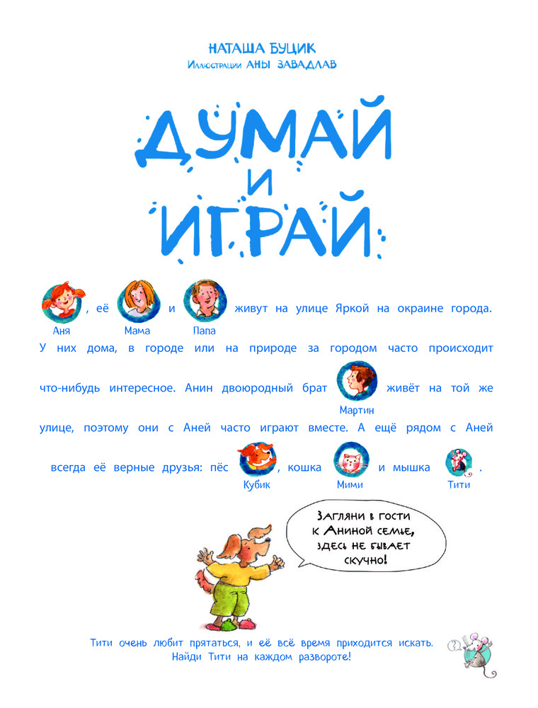 | Наташа Буцик — психолог, профессионально изучает вопросы культуры чтения и культурного воспитания. Долгие годы занимала посты главного редактора и ответственного редактора в детских журналах «Кикидо» и «Кикибан», продолжает сотрудничать с этими журналами по сей день, создавая совместно с Аной Завадлав и Грегором Буциком увлекательные дидактические рубрики. |