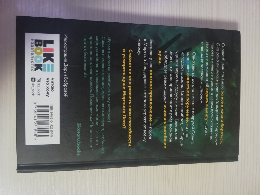 💳 Оплатить за товар можно при получении 🇰🇿 Есть бесплатная доставка по Казахстану от 1 дня 🎁 Копите бонусы с каждой покупки Сирша Ашвин привыкла за все в жизни бороться. Она рано лишилась родителей, выросла в сиротском приюте и ничего не знает о своем происхождении. Но это не помешает ей верить в мечту — стать главным королевским шпионом. Однажды, когда она вместе с подругой Саенго выполняет секретное поручение, на них нападают шаманы. Саенго погибает, но Сирше удается вернуть подругу к жизни. Теперь она знает, что тоже принадлежит к расе шаманов и обладает редким даром исцелять погибшие души. Впереди у нее опасное приключение — поход в Мертвый Лес, деревья которого угрожают всему живому. Сможет ли она развить свои способности и усмирить души Мертвого леса? |