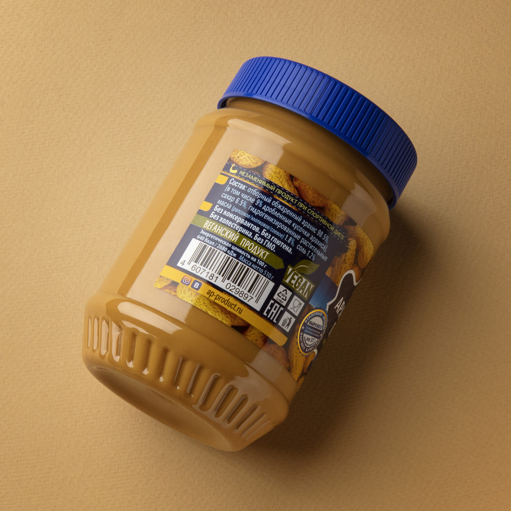 Очень пожалел, что не проверил состав: здесь и сахар, и посторонние масла, типа рапсового. Зачем это все в арахисовой пасте — непонятно. Видимо, чтобы выглядел эстетичней и приятней на вкус, чем полностью натуральная паста, которая более вязкая и жирная, но я к такой уже привык, поэтому внешний вид для меня менее важен, нежели натуральность и состав без излишеств.