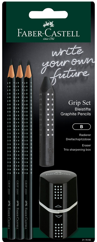 Faber-Castell Набор карандашейВ данный момент этот товар отсутствует в продаже. Возможно, у нас найдется аналогичный или похожий товар здесь. Стильный набор от Faber-Castell содержит три ч/г карандаша Grip 2001, твердостью В, в черном цвете. Запатентованное покрытие корпуса делает карандаш «Grip 2001» уникальным. Его трехгранная форма снижает напряжение руки, а нанесенный на корпус объемный рисунок предотвращает скольжение пальцев. Корпус покрыт экологически чистым лаком на водной основе. Благодаря специальной технология крепления грифеля SV предотвращает поломку при падении и затачивании. Набор также содержит ластик и точилку. Ластик Grip 2001 имеет узнаваемый запатентованный дизайн Grip и имеет удобную трехгранную форму. Мягко удаляет следы от чернографитных карандашей. Не содержит ПВХ и вредного фталатного пластификатора, благодаря чему безопасен для использования |