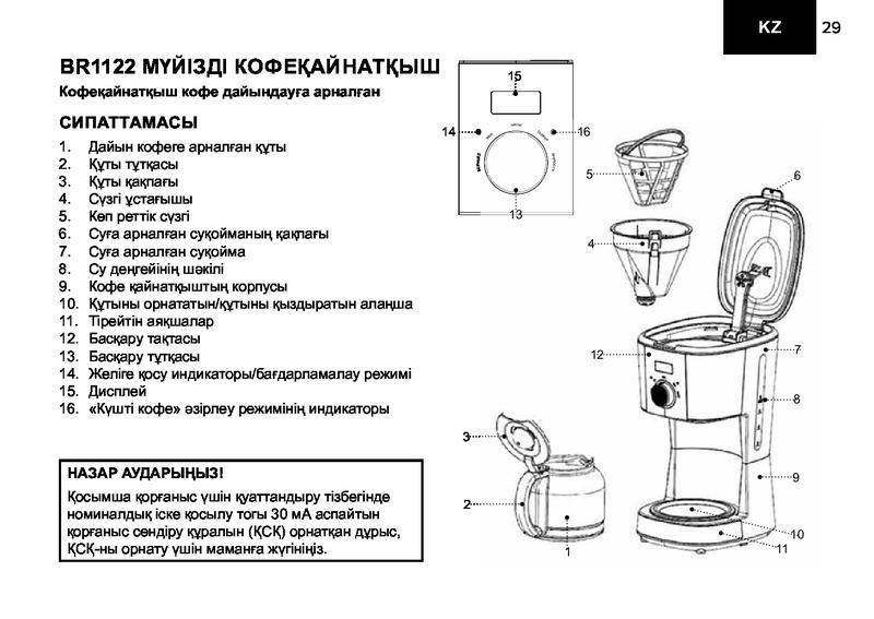 противокапельная система, автоотключение, дисплей, индикатор уровня воды, поддержка температуры, регулировка крепости кофе