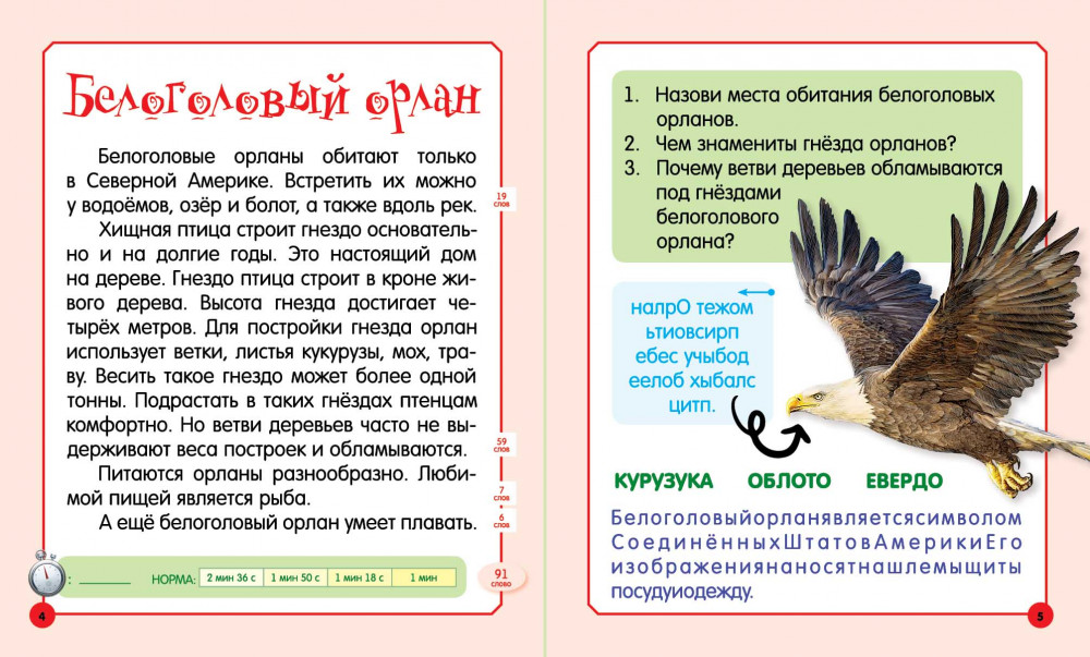 💳 Оплатить за товар можно при получении 🇰🇿 Есть бесплатная доставка по Казахстану от 1 дня 🎁 Копите бонусы с каждой покупки Серия: Рассказы-минутки Книга предназначена для первого чтения после букваря и отработки навыков чтения у детей младшего школьного возраста. В визуальном оформлении книги использованы различные приёмы, повышающие скорость и технику чтения. |