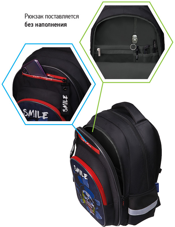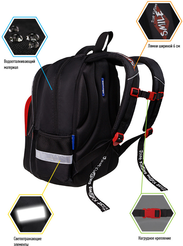 Berlingo Рюкзак «Joker»В данный момент этот товар отсутствует в продаже. Возможно, у нас найдется аналогичный или похожий товар здесь. Серия: Ergo Эргономичный рюкзак предназначен для учеников начальной и средней школы и является отличной альтернативой жестким ранцам. Формованная спинка из экологичного ЭВА материала устойчива к деформации, создана с учетом анатомического строения спины ребенка, имеет вентиляционные каналы для свободной циркуляции воздуха. Плотные лямки с возможностью регулировки и нагрудный фиксатор позволяют равномерно распределить нагрузку на спину ребенка. В рюкзаке предусмотрены 2 отделения, 2 передних кармана, 2 боковых кармана, уплотненное дно с откидной пластиковой планкой. Внутри имеется органайзер и отделение для учебных пособий. Световозвращающие элементы расположены на лямках, спинке и боковых частях ранца. |