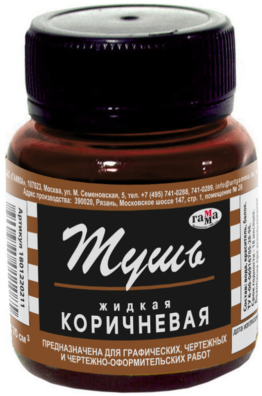 Тушь для графических, чертежных, чертежно-оформительских работ и каллиграфии. Сочетает яркость цветов и четкость линий. Оптимальная вязкость, легкость и удобство набора туши на рапидограф или рейсфедер. Устойчива к действию воды — достаточно промокнуть чертеж и тушь не растечется. Выдерживает температуру до −25°C.