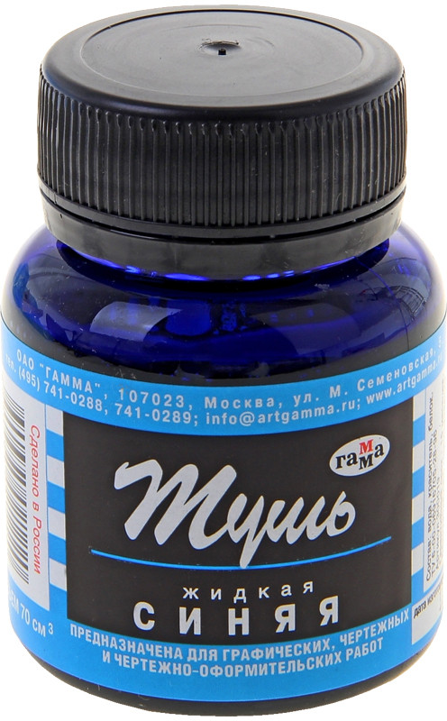 Тушь для графических, чертежных, чертежно-оформительских работ и каллиграфии. Сочетает яркость цветов и четкость линий. Оптимальная вязкость, легкость и удобство набора туши на рапидограф или рейсфедер. Устойчива к действию воды — достаточно промокнуть чертеж и тушь не растечется. Выдерживает температуру до −25°C.