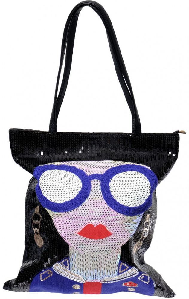 Сумка понравилась. Необычная. Подходит к любой цветовой гамме одежды. В летнее время на солнце вся сверкает. На молнии, удобный карман для ключей. Внутри два кармана.