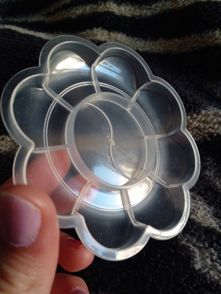 Брала для работы с бисером,удобно смешивать,качество пластмассы хорошее,запаха нет
