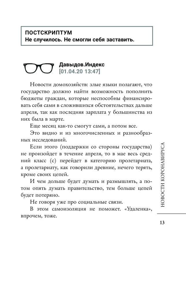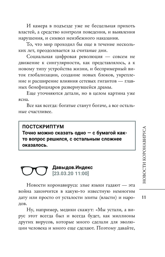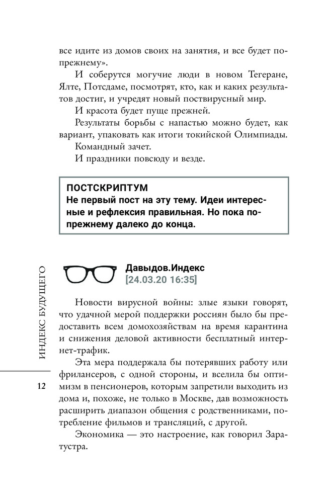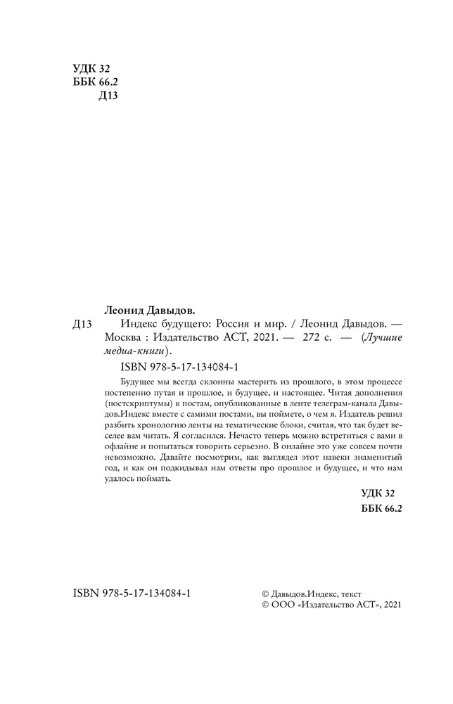 💳 Оплатить за товар можно при получении 🇰🇿 Есть бесплатная доставка по Казахстану от 1 дня 🎁 Копите бонусы с каждой покупки Серия: Лучшие медиа-книги Будущее мы всегда склонны мастерить из прошлого, в этом процессе постепенно путая и прошлое, и будущее, и настоящее. Читая дополнения (постскриптумы) к постам, опубликованные в ленте телеграм-канала Давыдов.Индекс, вместе с самими постами, вы поймёте о чем я. Издатель решил разбить хронологию ленты на тематические блоки, считая, что так будет веселее вам читать. Я согласился. Не часто теперь можно встретиться с вами в оффлайне и попытаться говорить серьезно. В онлайне это уже совсем почти невозможно. Давайте посмотрим, как выглядел этот навеки знаменитый год, и как он подкидывал нам ответы про прошлое и будущее, и что нам удалось поймать. |