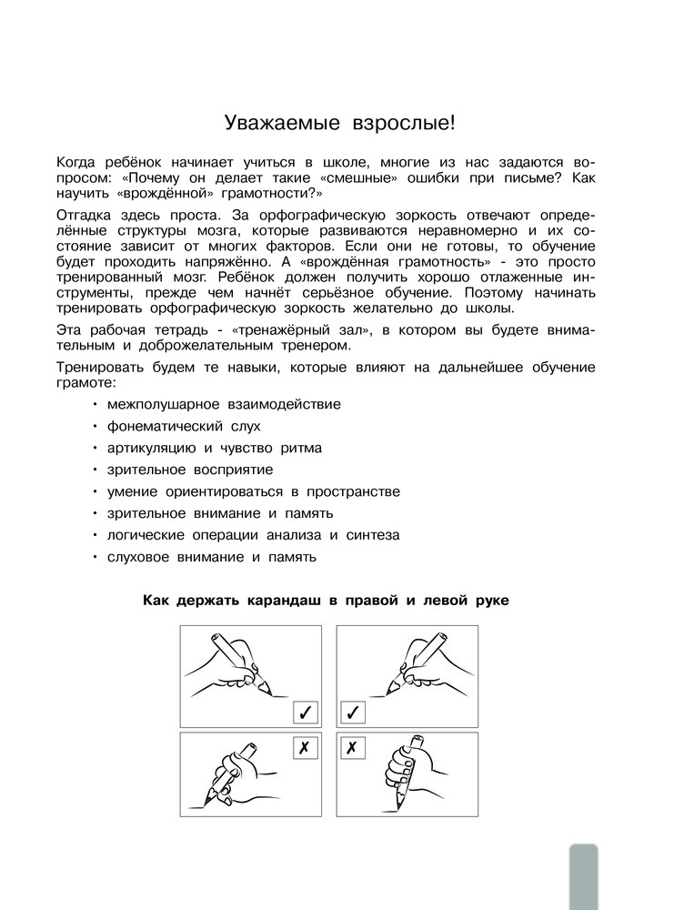 Тетрадь содержит комплексные занятия на формирование предпосылок и развитие необходимых психических функций для успешного грамотного письма, коррекцию и профилактику дисграфических ошибок в младшем школьном возрасте. Подойдет для людей, которые следят за своими мыслительными процессами.