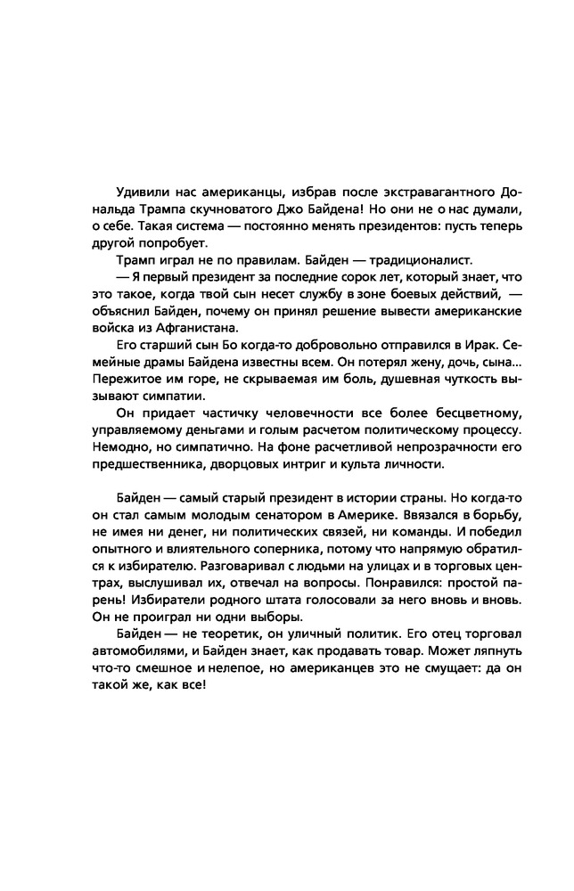 Эта книга помогла мне узнать о Джо Байдене больше, чем показывают о нём по телевизору. События его жизни поражают и вызывают восхищение. Я горжусь, что она есть в моей коллекции.