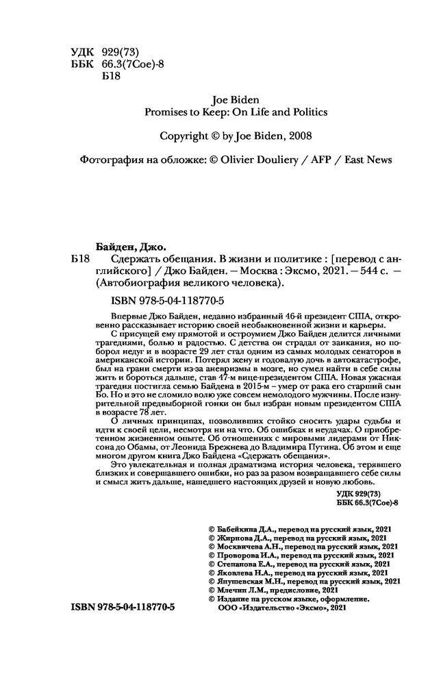 Сдержать обещания: В жизни и политикеДжозеф Робинетт Байден-младший В данный момент этот товар отсутствует в продаже. Возможно, у нас найдется аналогичный или похожий товар здесь. Серия: Автобиография великого человека Впервые Джо Байден, недавно избранный 46-й президент США, откровенно рассказывает историю своей необыкновенной жизни и карьеры. |