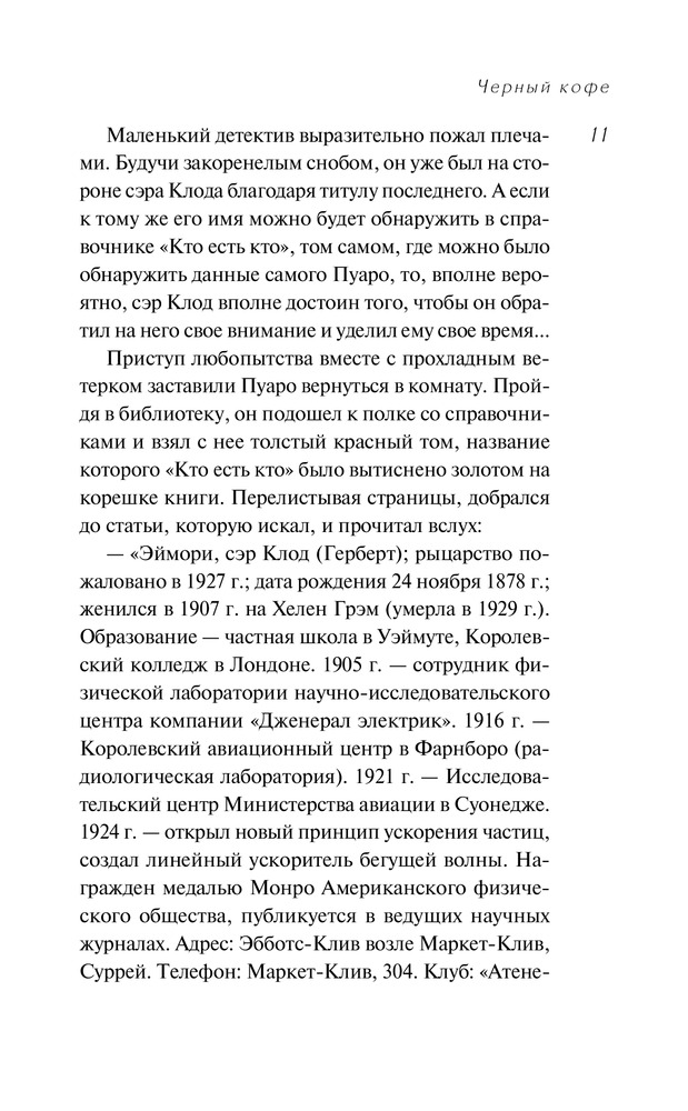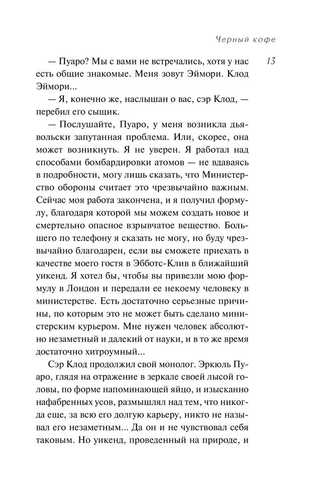 Черный кофеВ данный момент этот товар отсутствует в продаже. Возможно, у нас найдется аналогичный или похожий товар здесь. Серия: Агата Кристи. Первая леди детектива К великому сыщику Эркюлю Пуаро обращается за помощью знаменитый физик сэр Клод Эймори, уверенный, что ему угрожает опасность. Маленький бельгиец немедленно вызывает своего давнего друга и партнера, капитана Гастингса, и они спешат в дом ученого. Однако увидеться с Эймори Пуаро не успевает — тот отравлен. При этом исчезла открытая им формула сверхмощного взрывчатого вещества. Но обстоятельства преступления сложились так, что оно было совершено в закрытом помещении, а дом еще никто из присутствовавших в нем не покидал. Значит, убийца до сих пор здесь... |