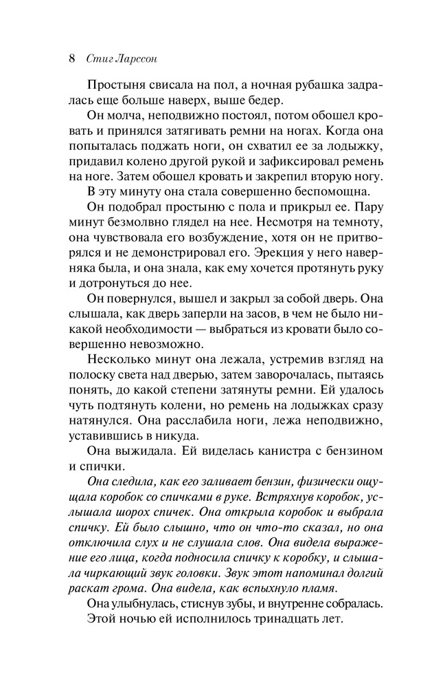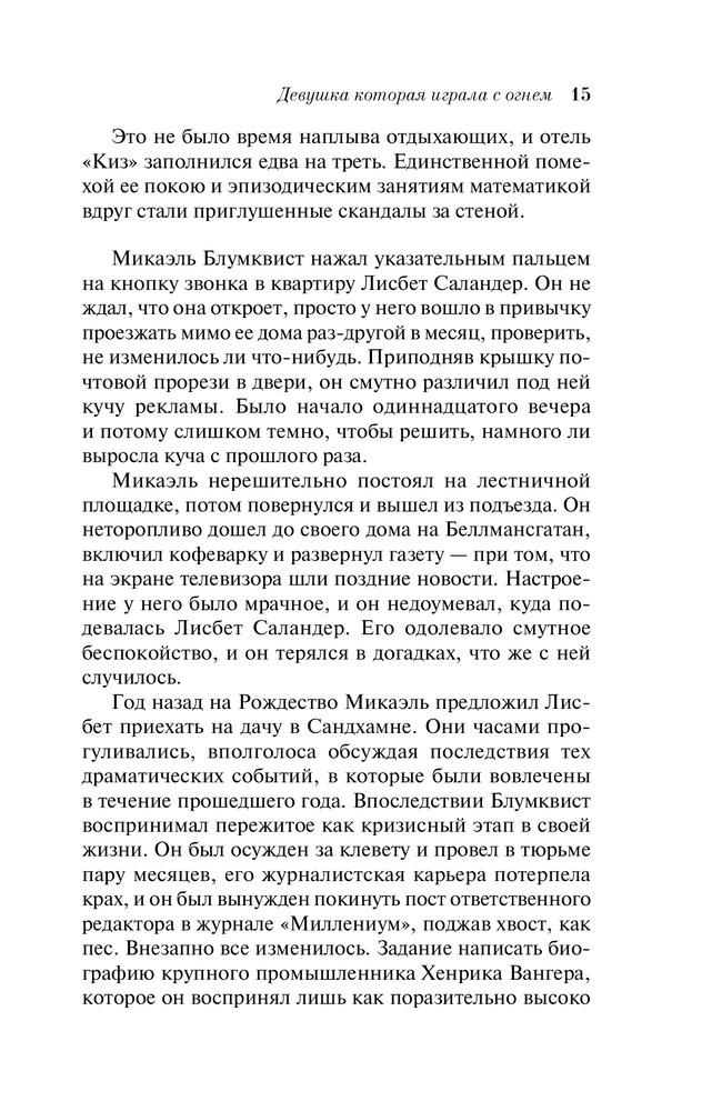 Микаэль Блумквист начинает собственное расследование гибели своих коллег и друзей и вдруг узнает, что в убийстве подозревают его давнюю знакомую Лисбет Саландер, самую странную девушку на свете, склонную играть с огнем — к примеру, заливать его бензином. По всей Швеции идет охота на «убийцу-психопатку», но Лисбет не боится бросить вызов кому угодно — и мафии, и общественным структурам, и самой смерти. |