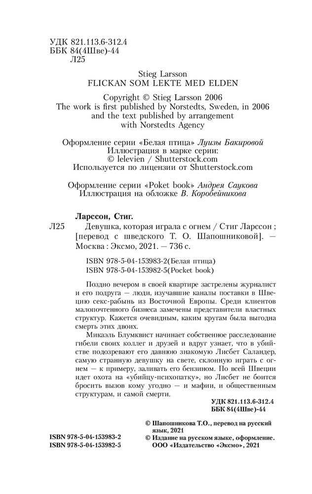 В данный момент этот товар отсутствует в продаже. Возможно, у нас найдется аналогичный или похожий товар здесь. Серия: Белая птица Поздно вечером в своей квартире застрелены журналист и его подруга — люди, изучавшие каналы поставки в Швецию секс-рабынь из Восточной Европы. Среди клиентов малопочтенного бизнеса замечены представители властных структур. Кажется очевидным, каким кругам была выгодна смерть этих двоих.