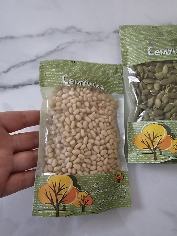 Зёрна кедровых орешков ваше всяких похвал. Вкусные, цельные, свежие. Довольно большой объём, цена соответствует. Кедровые орехи богаты витаминами В1, В2, В4, В7, Е, К, РР, а также магнием, калием, медью, цинком, марганцем, железом и фосфором. Кедровые орехи источник жирных кислот, которые легко насыщают, снижают уровень холестерина и регулируют обмен глюкозы. Всем советую. Очень качественные продукты питания у этого производителя. Спасибо Флип КЗ за доставку и разнообразие товаров.