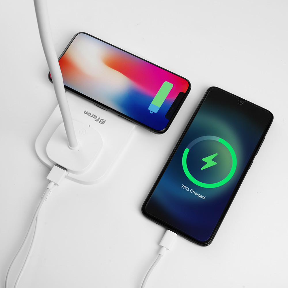 Светодиодный настольный светильник «Feron» позволит решать сразу несколько задач на рабочем столе одновременно. Кроме самого простого — дополнительного освещения рабочего места, можно заряжать два гаджета при помощи беспроводной зарядки и, подключив напрямую, через разъем USB.