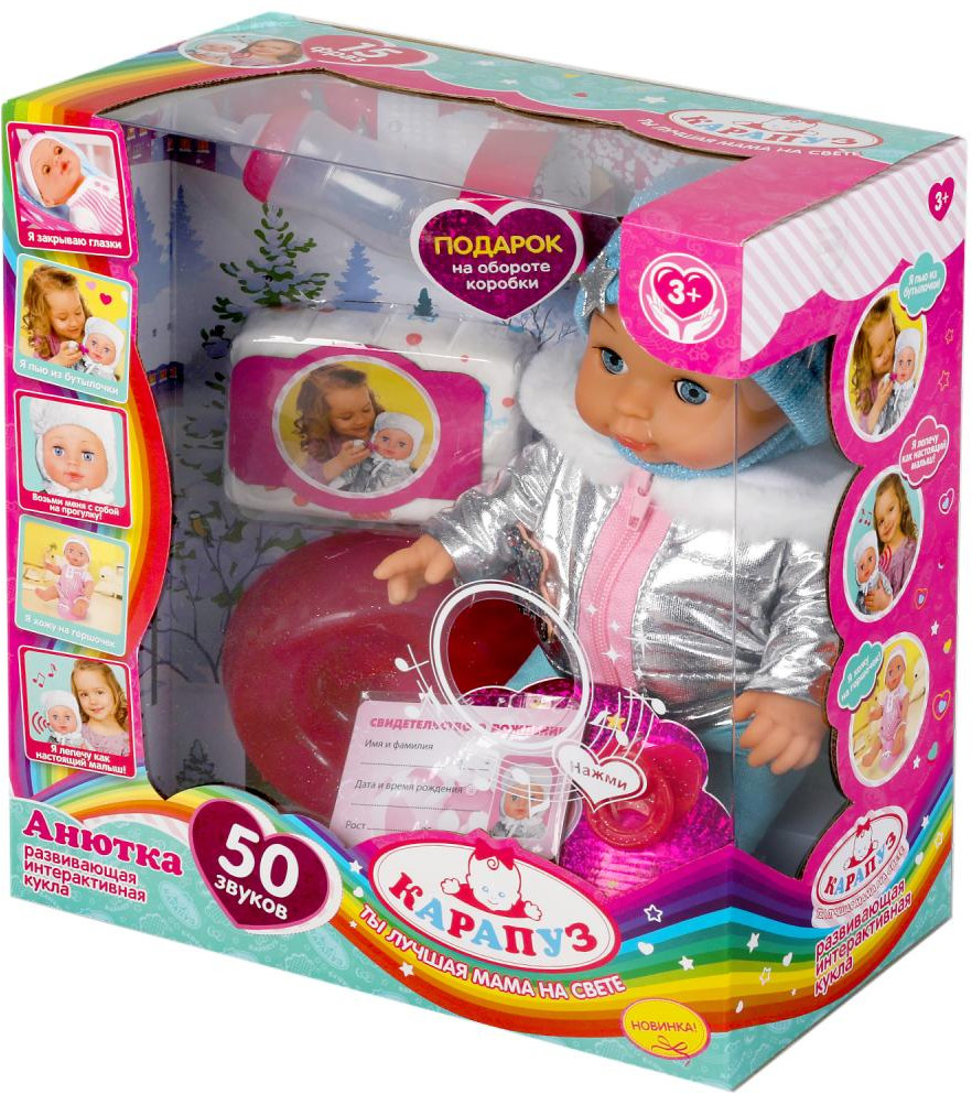 Карапуз Пупс озвученный «Анютка»В данный момент этот товар отсутствует в продаже. Возможно, у нас найдется аналогичный или похожий товар здесь. Развивающая интерактивная кукла «Анютка» ТМ «Карапуз» станет прекрасным подарком для вашего ребёнка. |